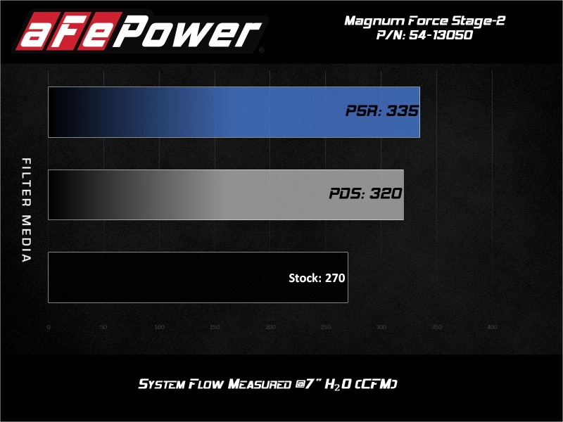 This 360-degree radial flow air filter features a 3-1/2" flange and our pre-oiled Pro 5R media with five layers of progressively finer cotton gauze media for maximum performance. It provides your engine with the largest amount of high-flowing air and delivers the highest power gains in most cases. This media is perfect for street and/or track use. Its inverted top makes for more filter surface area, resulting in longer service intervals. This system features a high quality, computer-designed, dyno-tuned intake tube to achieve maximum power gains while maintaining a perfect fit. Its XLPE material is heat soak resistant and extremely durable. It features an aFe Power design inspired by European vehicles. The included massive air filter is surrounded by an open-element XLPE (cross-linked polyethylene) polymer housing that minimizes warm engine air for maximum performance. Its open design allows for easy viewing of the air filter and delivers an aggressive Air Intake sound. It’s design incorporates the OEM air scoop to ensure that it gets the coldest air available. This is a direct fit intake system that utilizes factory mounting points and requires no cutting or modifications. All necessary clamps, couplings, and hardware are included. Its revolutionary design, featuring our unique filter-to-housing interface, uses half the number of parts of a traditional cold air intake system. Included billet aluminum fittings allows stock connections to transfer over seamlessly.