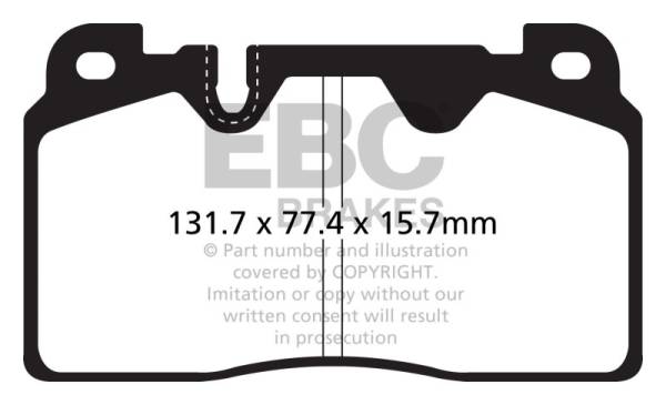 Designed for premium street driving offering better brake effect up to 600-degrees C (1100-degrees F). EBC Greenstuff has a high initial brake effect and gives drivers confidence from first application of the brake pedal. There is no such thing as a NO DUST pad. The very nature of how a brake works requires that some dust be generated to avoid rotor vibration (shimmying). The EBC pad creates less dust and dust is more easily washed off than most. All pads create more dust as they are bedding in especially if rotors are worn. Nominal friction coefficient 0.55. For heavier faster cars and vehicles above 200bhp we strongly recommend Redstuff which DOES offer much less dust.