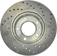 StopTech Drilled Sport Rotors are 1-piece direct replacement brake discs for factory brake systems and stock calipers that look great behind your wheels – and offer significantly improved braking performance. The unique cross-drilling aids with heat and brake dust dispersal; prevents glazing of the pads; adds bite and improves wet and dry braking performance. Built to last; the black e-coating provides protection from corrosion and the high carbon metallurgy (in most applications) offers quieter operation; better crack resistance and increased performance.
