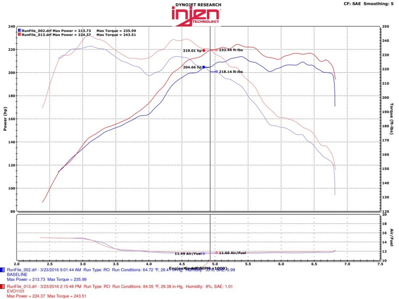 SuperNano-Web Dry Air Filters: The SuperNano-Web Dry air filter is uniquely designed to increase flow, outstanding filtering efficiency, and a hassle free cleaning process. Quality Hardware: From the stainless steel band clamps with inner protective liner to the reinforced automotive grade silicone couplers. We use nothing but premium hardware to provide the most secure installation available. , , Dyno Results: After hours of design work and dyno testing the EVO1103 Evolution Cold Air Intake system puts down an impressive 14 additional horsepower and 15 lbs. of torque.