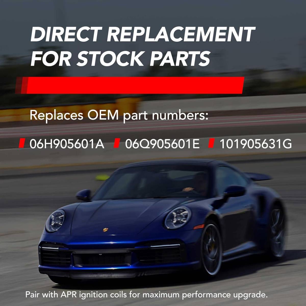 A DIRECT-FIT UPGRADE: Direct plug-and-play coil replacement plus direct-fit iridium spark plugs—no wiring, coding, or tuning changes required. Always verify spark plug size, reach, gap, and heat range before installation.